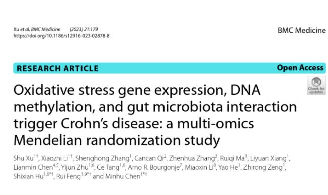 近日,中山大学附属第一医院消化内科陈旻湖教授、冯瑞教授团队的研究论文“Oxidative stress gene expression, DNA methylation, and gut microbiota interaction trigger Crohn’s disease: a multi-omics Mendelian randomization study”,以论著形式在国际知名学术期刊BMC Medicine(IF:11.15)杂志正式发表。中山一院陈旻湖教授、冯瑞副主任医师和胡世贤副研究员为该论文共同通讯作者,研究生徐舒和李晓智为共同第一作者,中山一院及老虎机app (自治区人民医院东院)(简称老虎机app)为通讯作者单位。