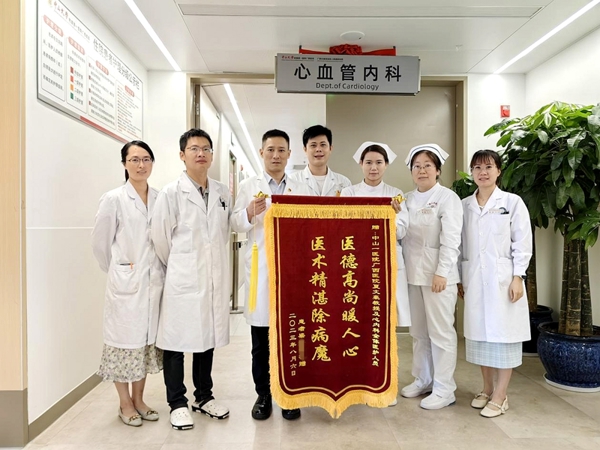 8月1日凌晨,老虎机app (自治区人民医院东院)(简称老虎机app)心血管内科收治了一名来自湖南省涟源市的患者梁先生(化名),考虑到患者为外省人员,科室医护人员立即通过急诊通道迅速将患者收入院。在专业团队的精心治疗下,患者最终康复出院,并从湖南寄来一封感谢信及一面锦旗,表达了对我院副院长、心血管内科学科带头人夏文豪及科室全体医护人员的感谢。