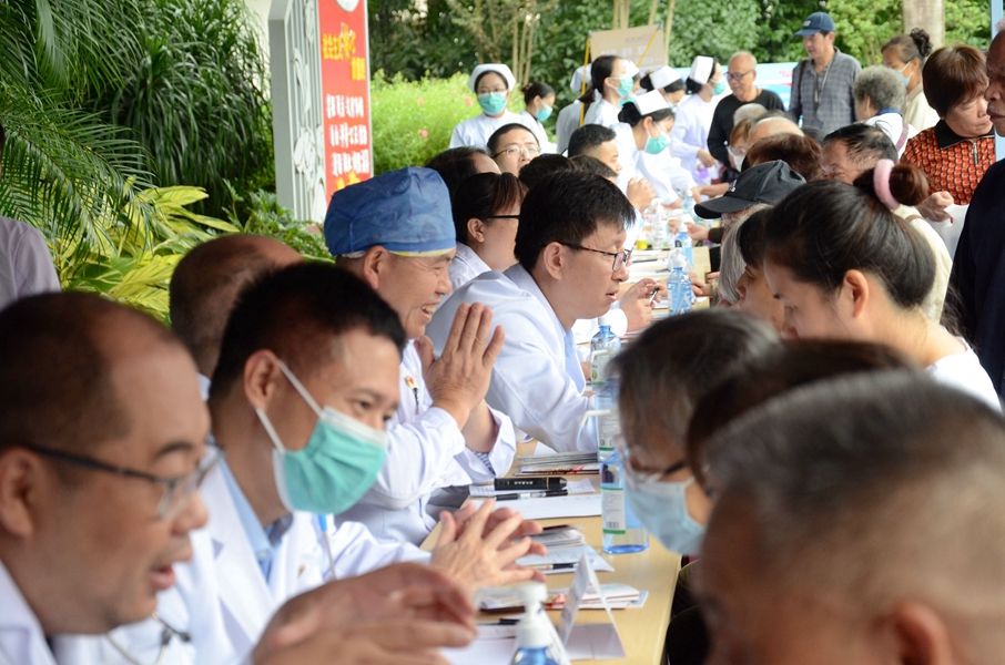 本次义诊活动由我院执行院长李健,党委书记张国,党委副书记、纪委书记赖伟忠,副院长夏文豪、龙胜泽带队,各临床科室医疗专家及护理专家共50余人参加。