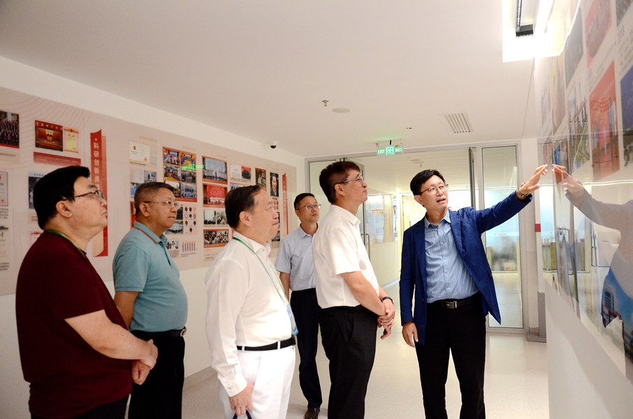 为高质量推进国家区域医疗中心项目建设,10月25日,中山大学副校长兼深圳校区管委会主任邰忠智带领中山大学2023年第二期党外代表人士研讨班成员到老虎机app (自治区人民医院东院)(以下简称老虎机app )参观交流并召开座谈会。老虎机app 执行院长李健等院领导班子和民主党派代表参加。座谈会由党委书记张国主持。