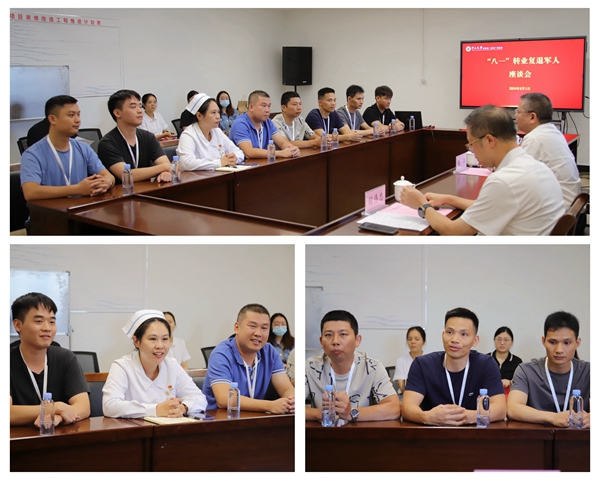 在座谈交流中,我院8名退役军人代表先后发言,回忆军旅峥嵘岁月,一致表示将继续发扬军人“特别能吃苦、特别能战斗、特别能奉献”的精神,投身到建设国家区域医疗中心项目中去,坚定信念,奋发有为,为人民群众健康保驾护航。