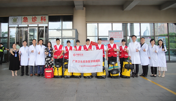 我院应急医学救援队由急诊科主任王科科带队,成员由急诊科黄乾萍、刘珊和梁超,骨科赵勇,普通外科覃华波和黄诗婷共6名队员组成。
