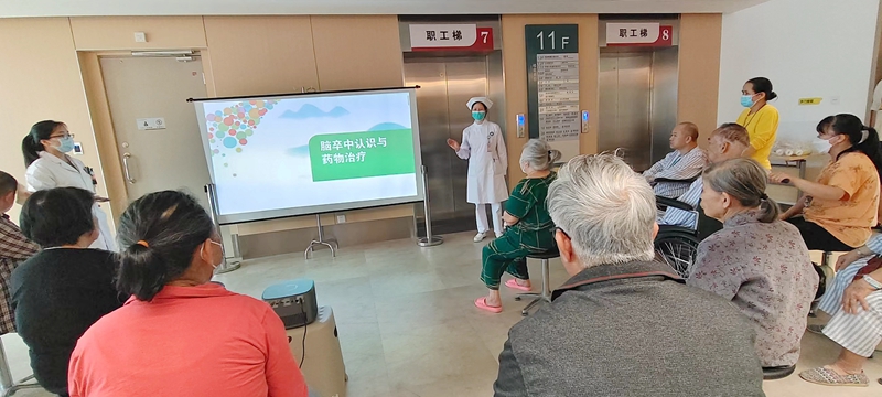 本次患教会由黎春燕医生主讲,她用通俗易懂的语言分别从脑卒中的危险因素,脑卒中的识别、用药及复查等方面为患者展开详细的讲解。随后,黄小燕从脑卒中相关日常生活方式的干预方法及患者出院后居家自我管理等方面为患者进行宣讲,并通过有奖问答的形式,与患者进行现场互动。