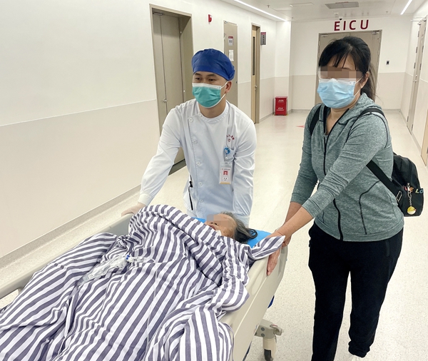 ▲伤者在家属和医护人员陪同下前往诊疗室
