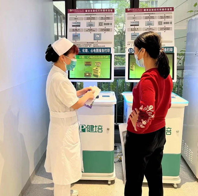 以心换心,让患者满意。“您好,请问您需要什么帮助”“您好,内科在二楼,请您乘扶梯上行”“您好,餐后血糖需要按您吃第一口饭开始计时,请您在那边休息,到时间我提醒您”。每天她们都伴着微笑,重复着忙碌的工作。指导患者使用微信公众号,帮助测量血压,指引检查……全方位的便民贴心服务,以心换心让患者满意。她们每天用20000步刷新着穿梭的足迹。