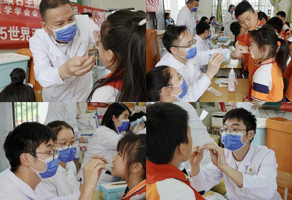讲座结束后,义诊团队医护人员为该校学生进行口腔检查,现场教学正确的刷牙及维护口腔卫生的方式方法,还给大家发放了口腔护理小礼包。“听了医生的这堂课,我学会了很多口腔小知识。”“以后我也想成为医生,帮助更多人看牙齿。”现场的学生纷纷说道。