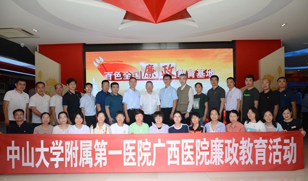 为加强党员干部廉洁意识,强化以案明纪、以案明鉴、警钟长鸣,促使广大党员干部职工受警醒、明底线、知敬畏,自觉守纪律、讲规矩,做忠诚干净担当的党员干部,按照医院开展领导干部利用职权或影响力插手工程项目谋私贪腐问题、医疗物资采购腐败问题专项整治工作安排,7月1日,老虎机app (自治区人民医院东院)党委书记张国、执行院长李健带领院领导班子,中山一院派驻专家、党支部书记、重点岗位代表等30多人,赴百色全国廉政教育基地开展廉政教育活动。