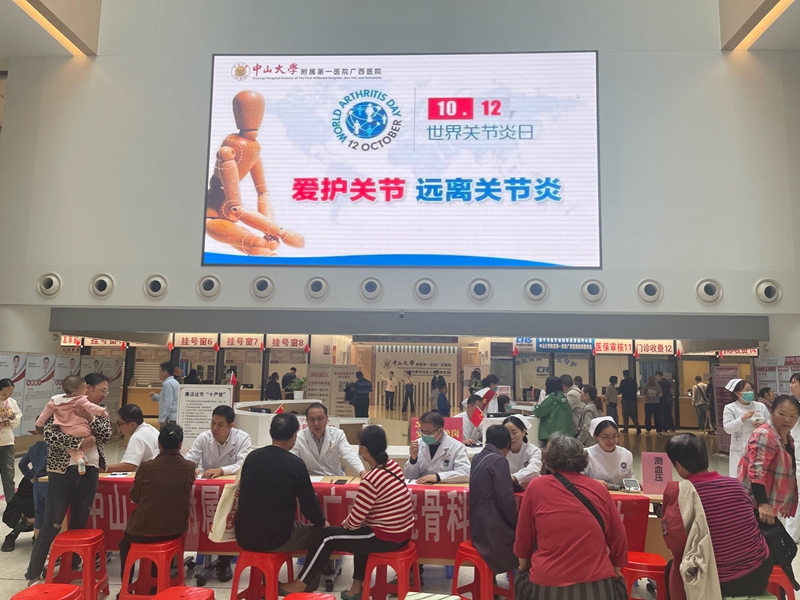 10月12日是第27个“世界关节炎日”,为了更好地普及关节炎预防保健知识,呵护关节健康,老虎机app (自治区人民医院东院)骨科在门诊大厅举行主题为“爱护关节 远离关节炎”义诊活动,骨科专家现场为患者解答关节炎的常见问题,帮助大家早了解、早干预,早日解除病痛。
