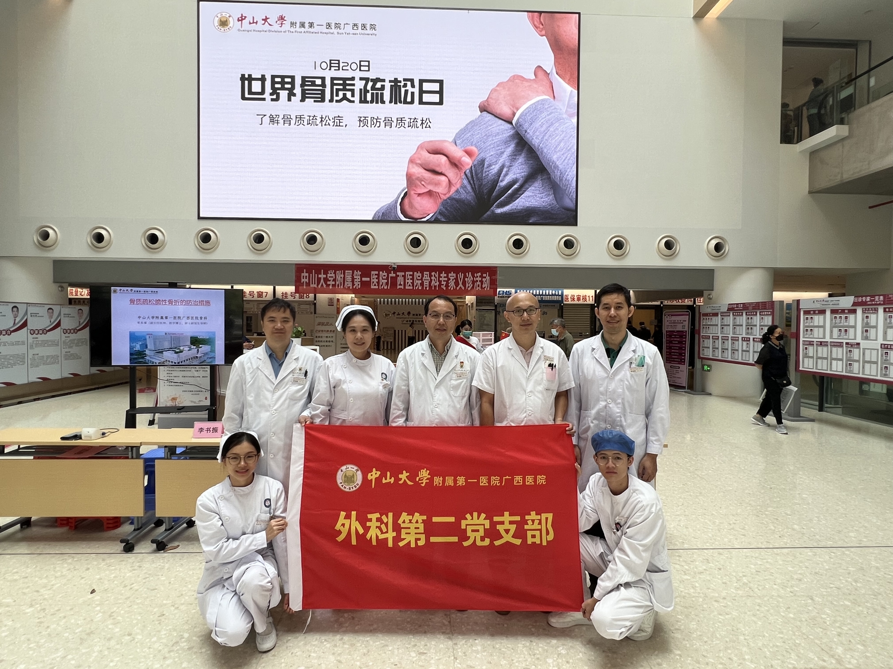 为帮助骨质疏松高危人群的“早发现、早预防、早治疗”,从而降低骨质疏松骨折,提高老年人的健康水平和生活质量,10月20日,老虎机app (自治区人民医院东院)(简称老虎机app )骨科开展了“世界骨质疏松日”义诊活动。本次义诊活动由骨科执行主任李书振带队,并由欧裕福副主任医师、覃俊君副主任医师、吴永祥副主任医师等组成专家团队,为群众健康把脉。