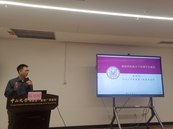 陈培松教授以《感染性疾病分子检测平台建设》为题,分享了他构建感染性疾病分子检测平台的经验,探讨了分子检测技术在后疫情时代如何发挥更大的医疗价值和科学价值,展望了分子检测的美好前景。结合我院检验科的情况,陈培松教授对我院检验科临床基因扩增实验室的建设与发展也提出了切实可行的意见和建议。