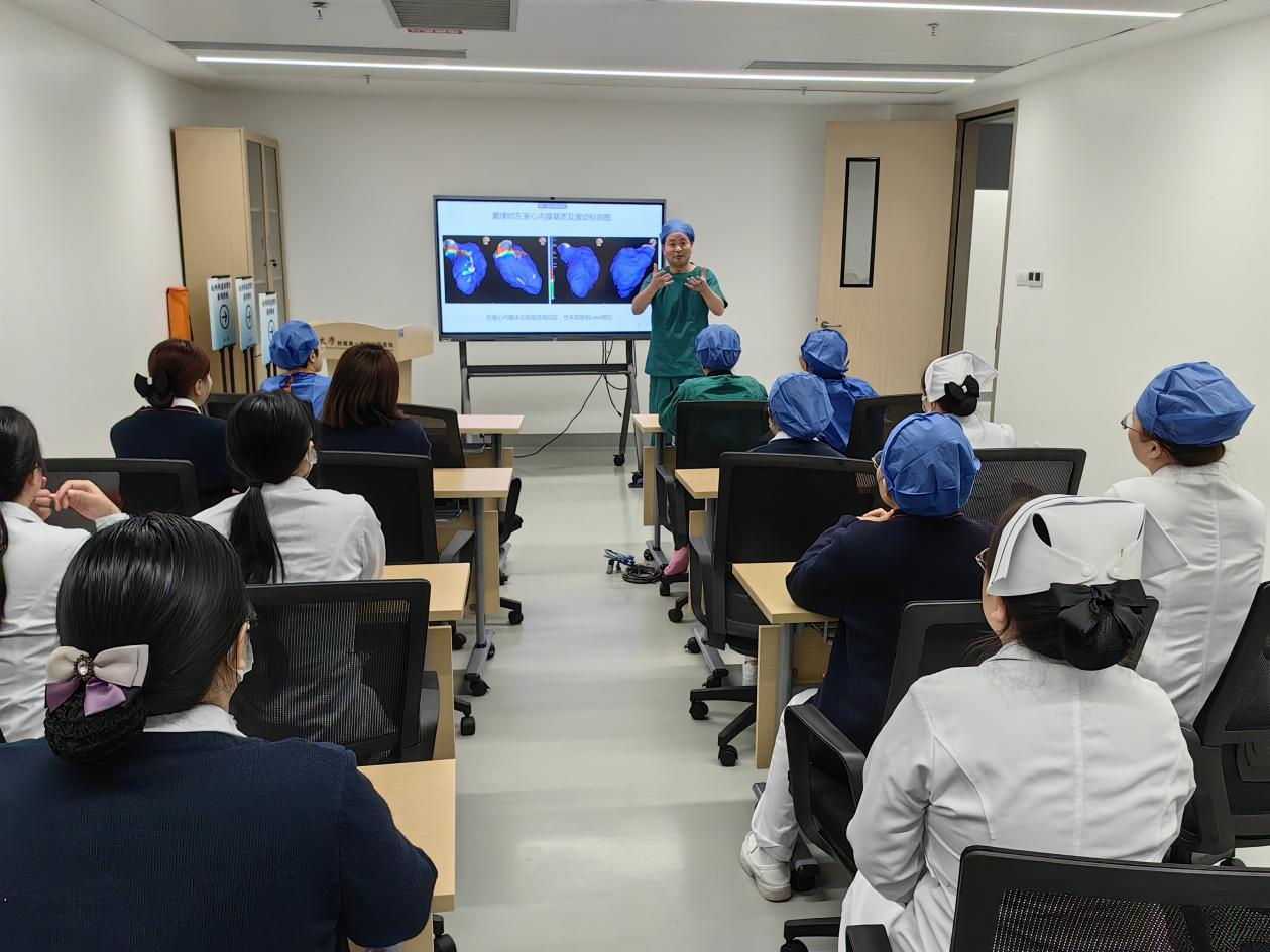 手术间歇及后,何建桂教授还围绕“房颤消融术后管理策略”和“辅助循环支持下的器质性室速消融进展”等内容为心血管内科全体医护人员进行授课。同时,还以病例介绍的方式分享了自己的宝贵经验。
