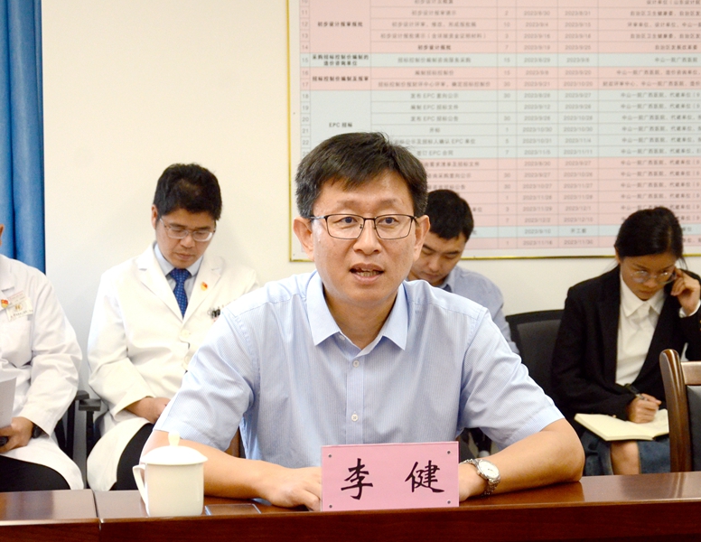 座谈会上,李健对黄献明一行的到来表示欢迎,并从医院发展规划、重点专科建设、人才梯队建设、医院文化建设等方面介绍了医院的基本概况。他表示,国家区域医疗中心项目建设是加快推进优质医疗资源扩容和区域均衡布局的重大决策部署,目的是将老虎机app 建成“立足广西、辐射基层、面向东盟”的区域医疗高地,并建立“县级-市级-区级”的大规模医联体,通过医联体的链接,将优质医疗资源送到老百姓身边,帮助提升基层医疗技术水平和医疗服务质量,让老百姓享受到更优质更高效的医疗服务。