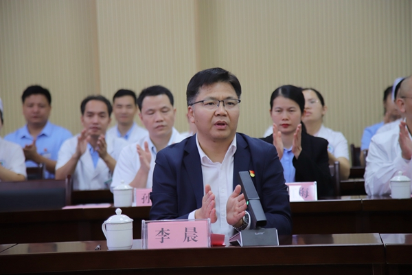 会上,杨超与李晨代表两院在活动上进行签约。杨超代表我院向博白县第二人民医院颁发技术协作单位牌匾。
