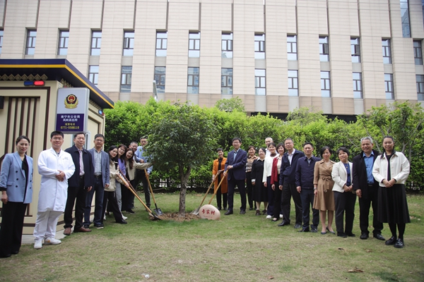 与会专家、领导在医院门前的“专家树”合影留念。