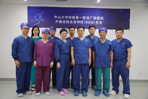 一个穿刺点、一根导管、一场微创手术,就“搞定了”多种药物都控制不了的高血压。7月9日,中山大学附属第一医院(简称中山一院)广西医院心血管内科率先开展一例桡动脉路径皮导管肾动脉去交感神经消融术(Renal denervation,RDN),为一名高血压患者解除了“高压”危机。随着这项微创介入技术在临床的应用,将为更多高血压患者提供新的治疗选择。