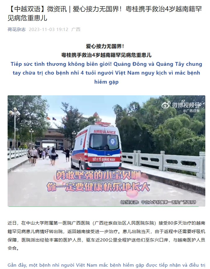 该报道通过微观的救治细节展现宏观的协作价值,发布后引发中越网友广泛共鸣。新闻报道以跨国救治为切口,既展现了中山一院“医病医身医心,救人救国救世”医训精神的传承,也诠释了粤桂医疗协作的实践价值与国家区域医疗中心的辐射效能。