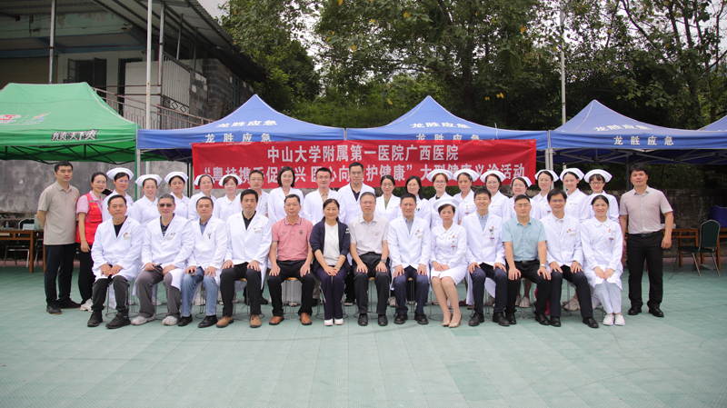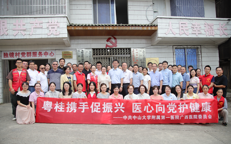 为全面落实习近平总书记关于乡村振兴和民族团结工作的重要指示精神,以党建引领推动定点帮扶工作走深走实,铸牢中华民族共同体意识,在中秋、国庆双节来临之际,中山大学附属第一医院(简称中山一院)广西医院于9月29日赴龙胜各族自治县乐江镇独镜村开展“粤桂携手促振兴 医心向党护健康”乡村振兴与民族团结进步活动,组织粤桂专家联合义诊,推动优质医疗资源下沉,助力健康保障与产业振兴。