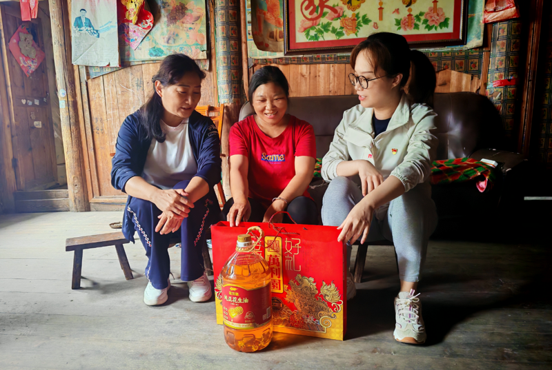 在村干部和驻村工作队的带领下前往帮扶户家中,了解村民身体状况、家庭收入、子女教育等情况,倾听村民在生产生活方面遇到的困难和问题,并送上慰问品。