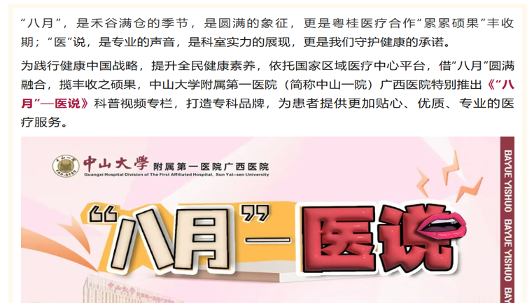 老虎机app 打造线上线下宣传矩阵,推出《佛子岭3号医生》《健康“邕”护》《八月医说》等科普品牌栏目,以通俗语言和专业解读传递医学知识,截止2025年8月发布科普136余期。
