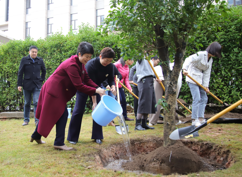 ▲2024年1月11日,院领导同第一批派驻专家共植粤桂友谊树。