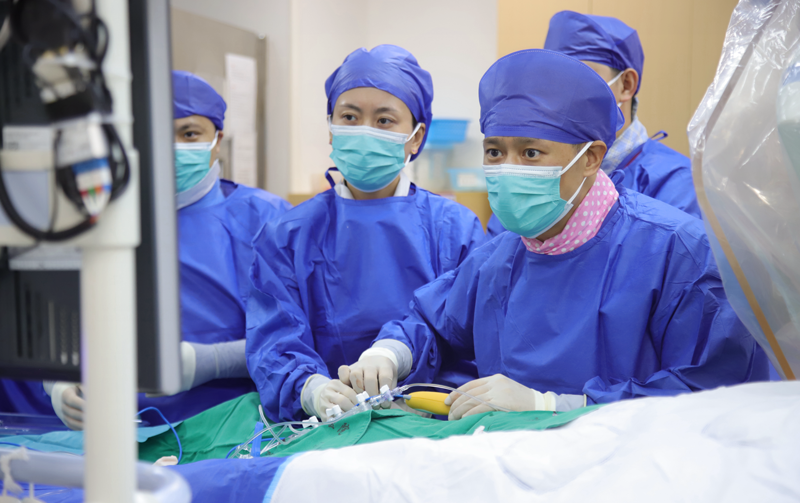 ▲心血管内科夏文豪教授团队完成广西首例桡动脉路径经皮导管肾动脉去交感神经消融术。