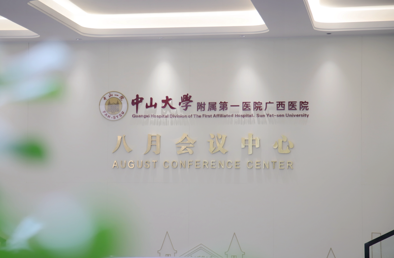 会议中心外墙特别设计制作“粤桂合作文化墙”,以“百年医路,仁心致远”和“山海接力传仁术,粤桂连心筑健康”两大主题,生动呈现医院发展历史与粤桂合作精神。