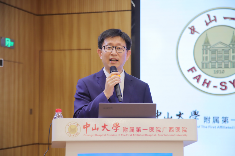 ”粤桂鼻颅底疾病多学科诊疗联盟“组长李健向大力支持联盟成立的专家学者表示感谢。他表示,“粤桂鼻颅底疾病多学科诊疗联盟”的成立,不仅是粤桂医疗协作史上的重要一笔,更是我院践行国家区域医疗中心建设使命、服务广西百姓健康的关键里程碑。我院作为国家区域医疗中心项目建设单位,始终以推动优质医疗资源扩容下沉和区域均衡布局为己任,系统引入中山一院先进的诊疗技术、管理模式和高端人才资源,持续提升区域整体医疗服务能力。在输出医院的全力支持下,我院已成功引进高精尖医疗技术164项,42项填补了广西区域内的技术空白;广西壮族自治区人民医院作为依托单位,为联盟运行提供坚实支撑,成为推动粤桂医疗协作落地见效的“关键支柱”。相信在各方的共同努力下,“粤桂鼻颅底疾病多学科诊疗联盟”将打造一个“跨区域、高水平、多学科”的协作平台,成为粤桂医疗协作的典范,为推动国家区域医疗中心高质量发展注入新的动力。