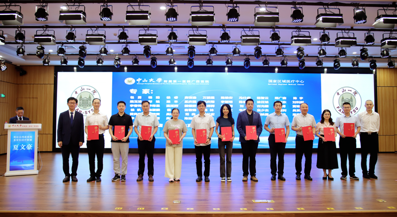 “粤桂鼻颅底疾病多学科诊疗联盟”副组长瞿申红、龙健婷给受聘专家代表颁发聘书。
