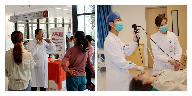 不仅如此,义诊现场的医护人员还为前来咨询的市民进行嗓音训练现场演示,随机选取一位现场市民参与训练。按照先到先得的原则,当天共有6位现场市民获得了免费高清电子喉镜检查的机会。医务人员还为大家发放嗓音宣传科普资料,义诊活动受到广大市民的一致好评。
