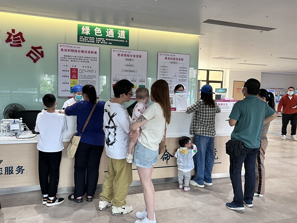 ▲在急诊导诊台等候的市民