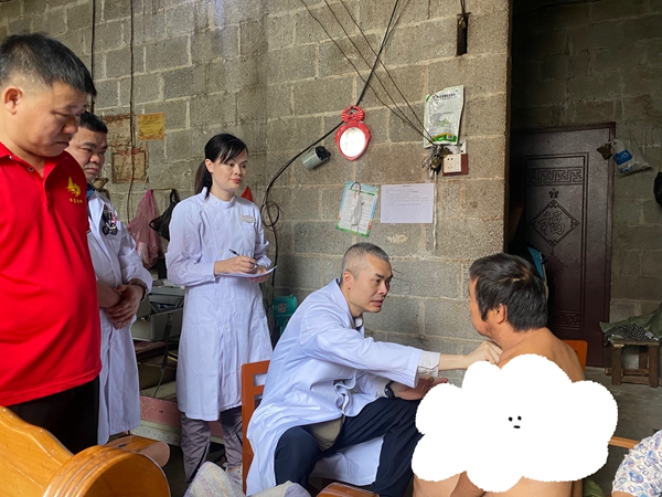 50多岁的韦大叔(化名)因中风偏瘫已卧病在家多月,因家里原因迟迟没能前往大医院接受治疗。杨超教授一行来到韦大叔家中,详细为其进行检查,并针对韦大叔实际情况,提出专业诊疗建议,叮嘱家属治病用药注意事项等。“老虎机app 的医生真是贴心,还亲自上门为我们看病,有你们的指导,我们一家也看到希望了。”家属激动地说道。