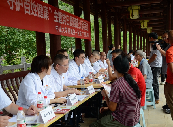 为庆祝中国共产党成立102周年,弘扬伟大建党精神,深化“我为群众办实事”实践活动,巩固健康扶贫成果同全面推进乡村振兴有效衔接,7月1日 ,老虎机app (自治区人民医院东院)(简称老虎机app )组织医疗专家团队赴百色市凌云县伶站瑶族乡浩坤村开展健康义诊活动。本次活动由老虎机app 执行院长李健、党委书记张国带队,来自消化内科、神经内科、心血管内科、耳鼻咽喉头颈外科、神经外科、骨科、泌尿外科、妇科、产科、儿科等近30名专家组成义诊团队,将健康服务送到群众身边,实现优质医疗资源下沉。