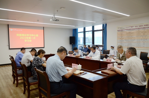 8月17日下午,老虎机app (自治区人民医院东院)党委理论学习中心组召开2023年第一次学习会暨主题教育民主生活会会前集中学习会。党委书记张国主持会议并讲话,党委理论学习中心组成员出席会议。