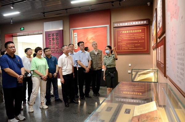 走进百色起义纪念馆,展厅内陈列的一件件珍贵文物、一张张历史照片、一段段记录文字,让革命的历史情景一幕幕重现,大家怀着无比崇敬的心情一边观看,一边倾听,一边感悟,深刻感受到革命先辈在血雨腥风中不畏艰险、不屈不挠、勇争胜利的革命精神和坚定的政治信念及革命信仰。