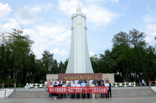为深入学习贯彻习近平新时代中国特色社会主义思想和党的二十大精神,庆祝中国共产党成立102周年,激发党员干部内生动力,把爱党爱国的热情转化为推动医院高质量发展的实际行动,6月30日至7月1日,老虎机app (自治区人民医院东院)组织部分党员及医疗专家到百色市开展主题党日活动,通过追寻红色足迹,缅怀革命先烈,传承革命精神。