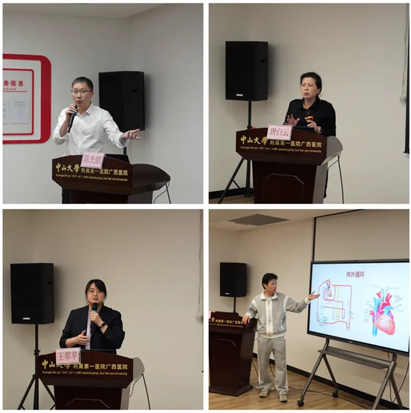 当天的学术讲座安排紧凑而充实,中山一院心胸外科ICU陈光献教授、唐白云教授、王翠苹副主任医师、张宝主治医师围绕《体外循环术后无法脱离体循过度至ECMO的应用》《心脏术后循环管理》以及《心脏手术相关急性肾损伤现状及治疗策略》等主题进行授课。
