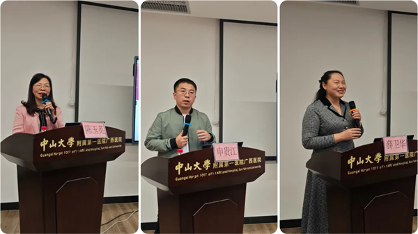 在学术交流环节,我院副院长龙胜泽对专家团队的到来表示欢迎。他提到,心脏外科围术期管理是确保手术成功和患者安全的关键环节,它涉及到术前评估、术中管理和术后恢复的全过程。此次交流活动,对于提升我院重症医学科护理水平、心脏外科围术期管理水平具有重要意义,希望与会科室以此次交流为契机,和中山一院专家团队深入交流,学习最新的研究成果,以提高专科水平,更好地服务患者。