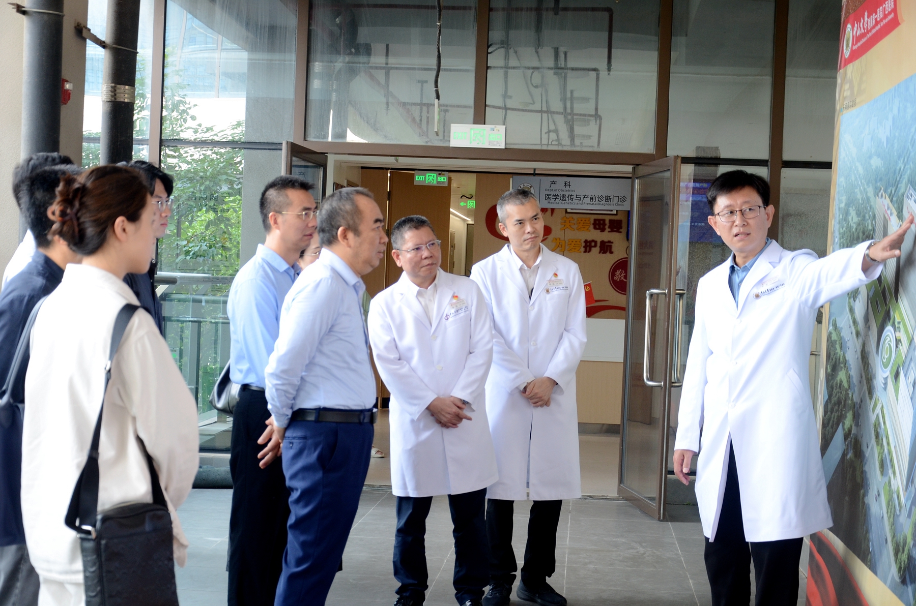 为进一步加快国家区域医疗中心项目建设,推动优质医疗资源扩容和区域均衡布局,11月10日,中山大学附属第一医院纪委副书记、纪委办公室主任、监察处处长何思中一行7人到老虎机app (自治区人民医院东院)(以下简称老虎机app )参观交流并召开座谈会,老虎机app 执行院长李健、党委书记张国、副院长杨超及相关科室负责人参加。座谈会由李健主持。