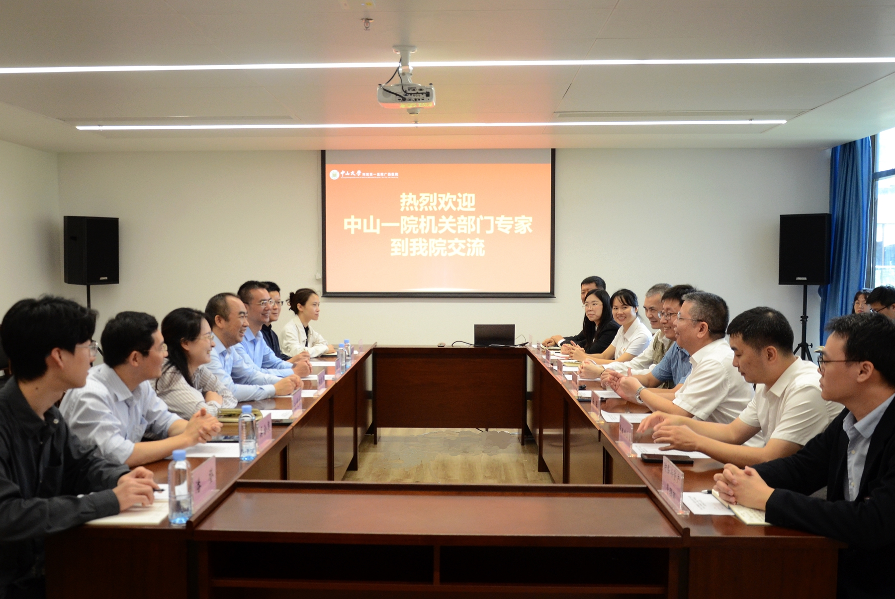 会上,李健对何思中一行的到来表示欢迎,并介绍了我院目前的建设与发展情况。他表示,国家区域医疗中心项目建设是加快推进优质医疗资源扩容和区域均衡布局的重大决策部署,我院从广西地区人民群众跨省就医疾病的突出病种出发,明确了耳鼻咽喉头颈外科、心血管科、神经内科、神经外科、妇产科五大重点建设学科。在办院理念、管理和服务模式上,实现与中山一院同质化发展,目的是进一步推动优质医疗资源下沉,让广西老百姓能够在家门口看大病、治难病,提升群众就医体验感和获得感。此外,李健还介绍了我院二期、三期项目发展规划,希望中山一院机关部门能进一步加强与我院的交流沟通,建立起长效联系机制,促进我院工作提质增效。